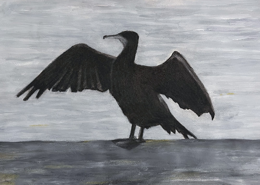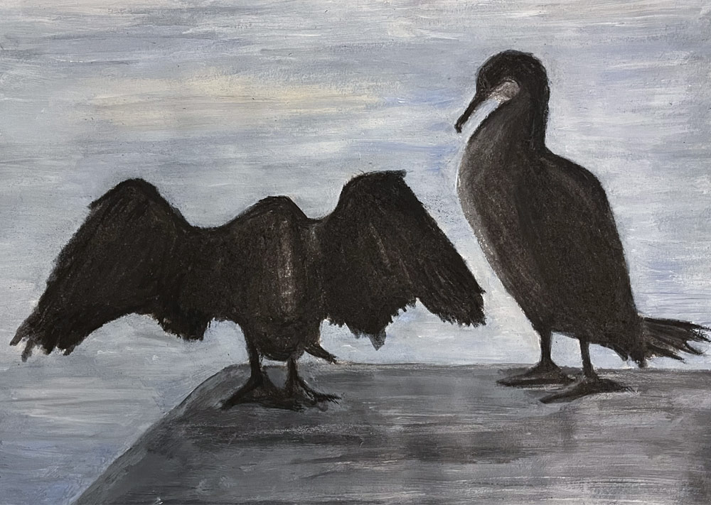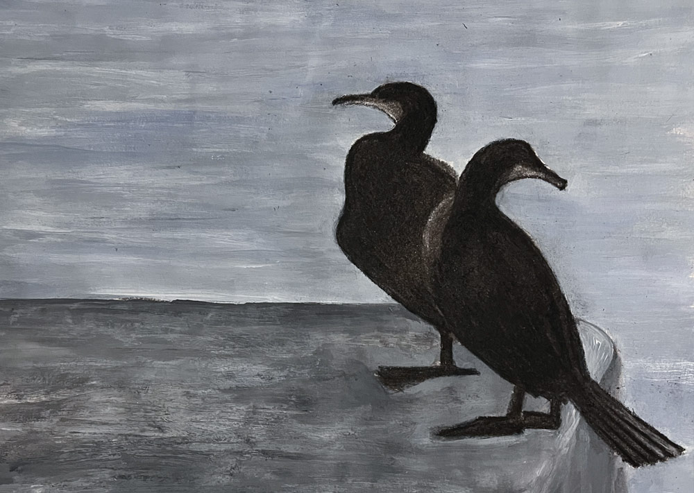 Durant le premier confinement du 17 mars au 11 mai 2020, après un temps de « sidération », je commence par faire un autoportrait en noir et blanc un peu raide et sévère reflétant mon état du moment. Puis j’ai eu envie de dessiner les seules personnes que je côtoyais : les proches confinés avec moi et mes voisins directs que je faisais poser simplement devant leur porte d’entrée ou leur fenêtre. Un dessin en noir et blanc au stylet-crayon sur la tablette. Je termine cette série avec ma nièce, la première à arriver de Paris après l’annonce du déconfinement.